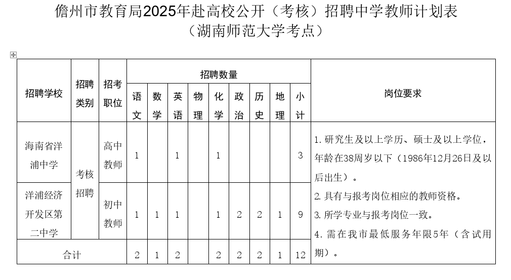 应聘者需满足条件:研究生及以上学历、硕士及以上学位,年龄在38周岁及以下(1986年12月26日及以后出生);具有与报考岗位相应的教师资格;所学专业与报考岗位一致;需在儋州最低服务年限5年(含试用期);报考者须在2026年7月31日前取得普通高等教育本科及以上学历、学士及以上学位;留学归国人员需在2026年7月31日前提供教育部留学服务中心《国外学历学位认证书》。2026届毕业生如报名时暂无法提供,须提交承诺书(承诺2026年7月31日前取得)。